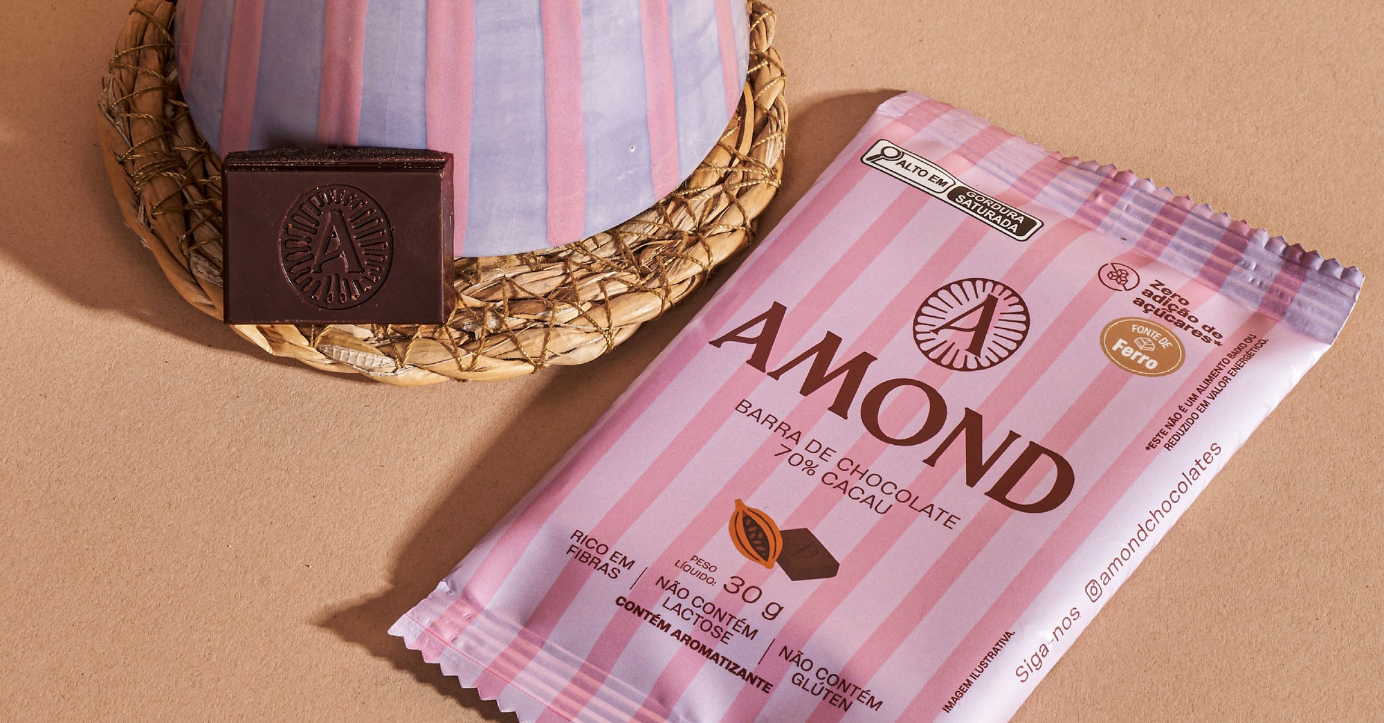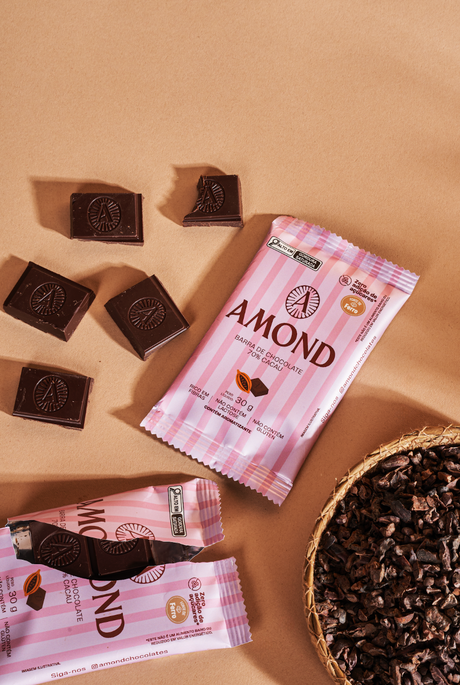 Cacau 70% brasileiro em uma barra cremosa, intensa e nutritiva.