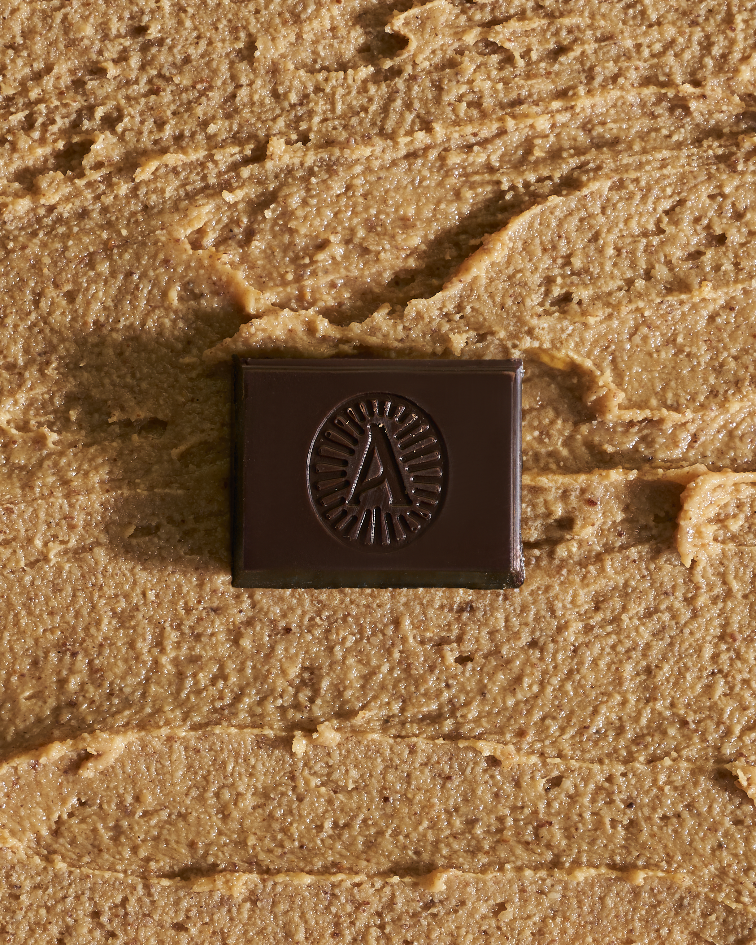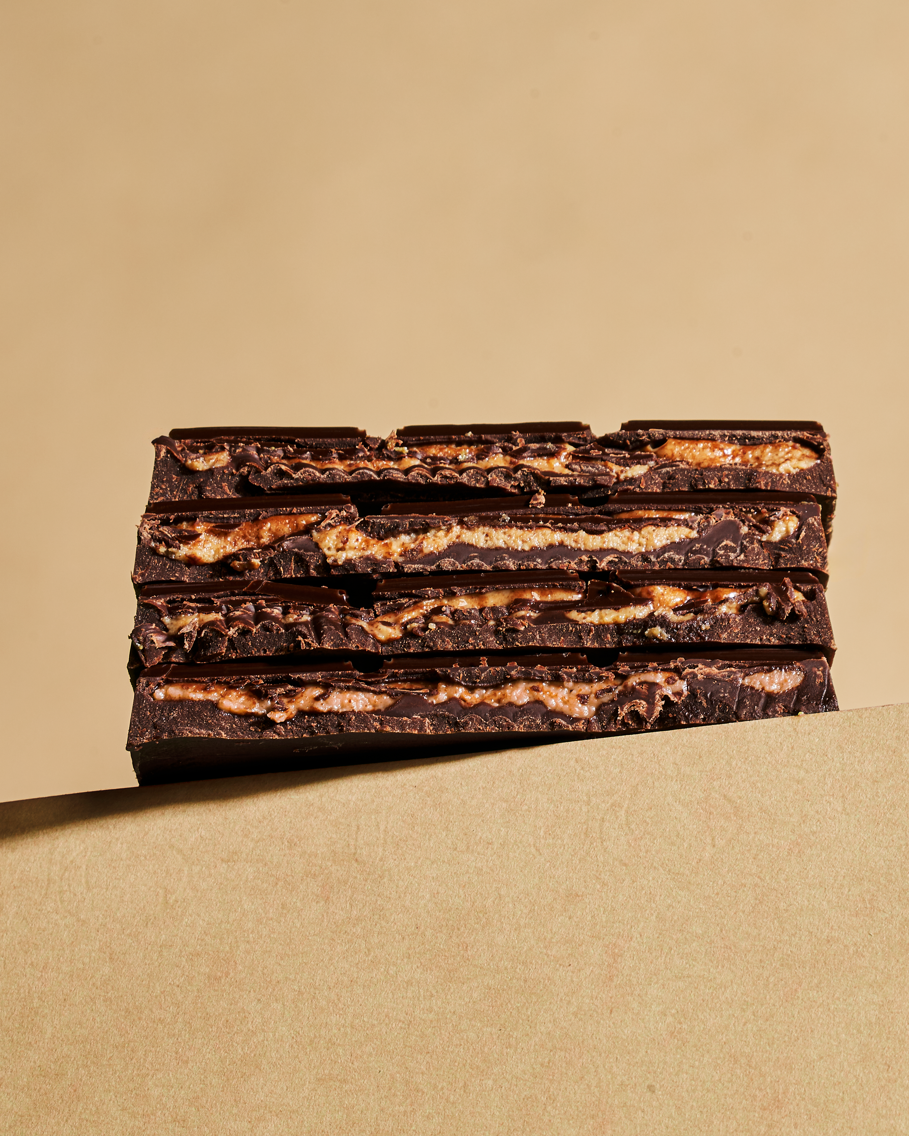 O equilíbrio perfeito entre cacau 70% e pasta de amendoim com flor de sal.